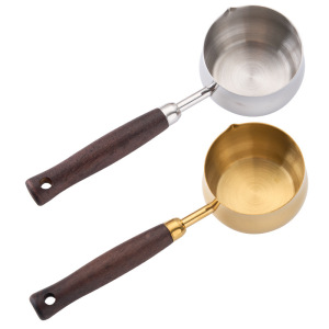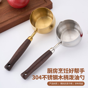 ステンレス製木柄油切りスプーン、深型、熱油鍋用、キッチン用平底、熱い牛乳用、多機能小型食器、目玉焼き用