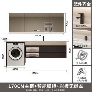 1.7m岩板シームレスセラミック洗面器+スマートスクエアミラー