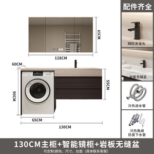 1.3m岩板シームレスセラミック洗面器+スマートスクエアミラー