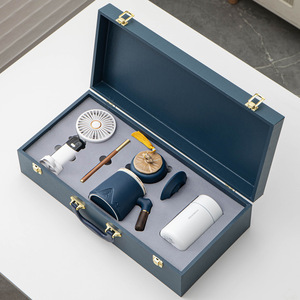 ブルーオフィスカップ + モバイルバッテリー + 筋膜ガン + ティー缶 + ペン