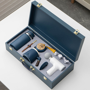 ブルーオフィスカップ + 魔法瓶カップ + 筋膜ガン + ティー缶 + ペン