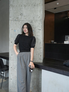フレンチトップニッチテンセルセーターレディース夏新作スクエアネック刺繍スリムフィットショートミッドスリーブレースシャツ