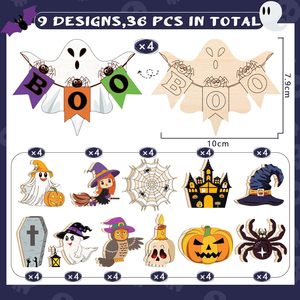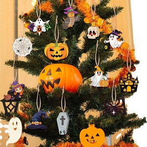 国境を越えた新しいハロウィーン木製ペンダントカボチャ魔女フクロウクモの巣中空吊り下げ装飾