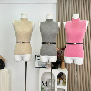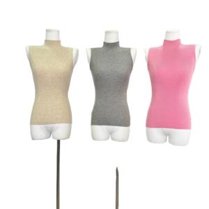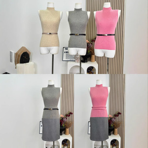 韓国美女*韓国夏気質美人無地ハーフタートルネックノースリーブウエストニットトップ