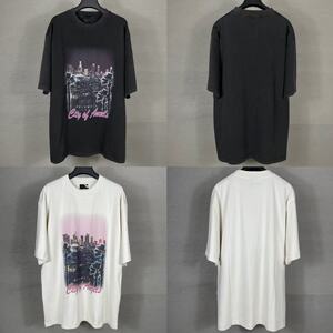 パリBファミリー25新作夜景ダイレクトプリントプリントウォッシュ半袖男女兼用OSルーズカジュアル半袖Tシャツ