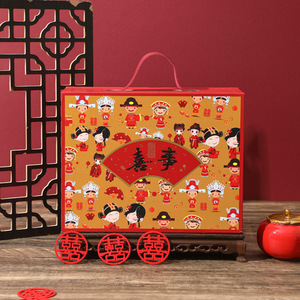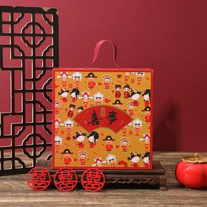婚庆喜事礼物包装盒红色翻盖磁吸皮带手提回礼喜糖大盒子空盒礼盒