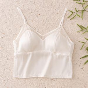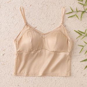 夏のシルク薄いサスペンダーブラジャー胸パッド桑シルクサテンフレンチビューティーバックキャミソール下着快適