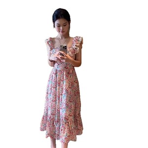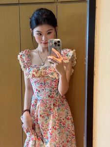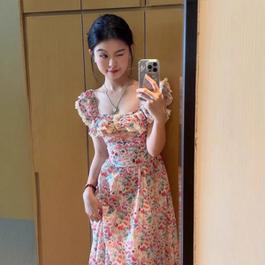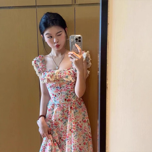 碎花方领连衣裙女夏季新款沙滩裙修身显瘦海边度假休闲法式长裙子