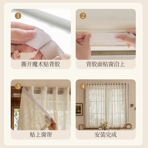 ベルクロカーテン パンチング取付 ガーゼカーテン 2025年新モデル 透光性と不透明 寝室 出窓 完成品 シンプル