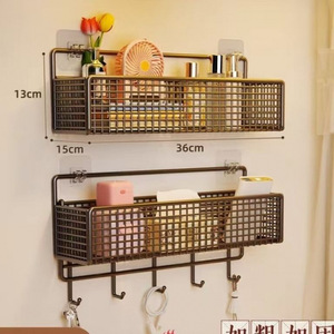バスルーム収納ラックキッチン壁掛け寮ベッドサイドハンギングバスケットバスルームパンチフリーウォールストレージ収納ラック