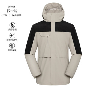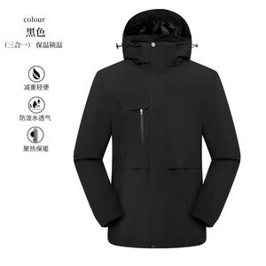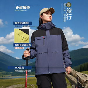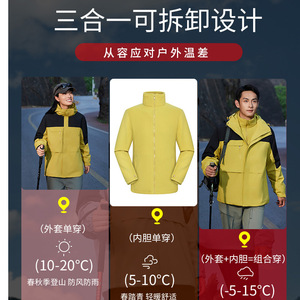 新款秋冬户外两件套摇粒绒内胆保暖夹克男可拆卸三合一情侣冲锋衣