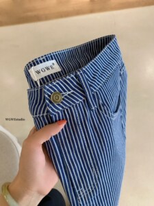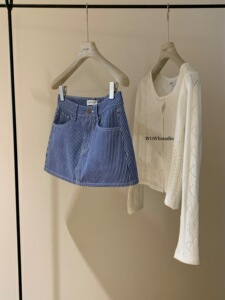 【WGWE】5665 韓国ブルーストライプデニムスカート レディース 2025年夏 露出防止着痩せAラインスカート