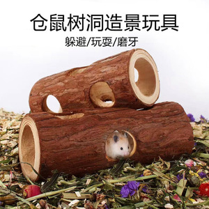 ハムスターの木の穴のおもちゃ、ゴールデンベアペット、モミの木のシェルターハウス、木の切り株、ケージ、造園、穴の掘り、トンネル、歯ぎしり、退屈解消