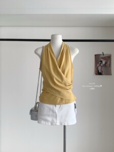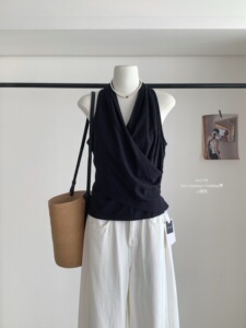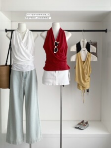 2025年夏のリアルショット、ファッショナブルで多用途な韓国版、シンプルで快適な無地のレイジースタイルノースリーブカジュアルホルターネックベスト