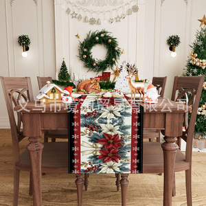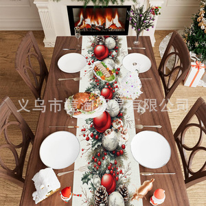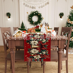 2025 クロスボーダークリスマスリネンテーブルフラッグホリデーホームレストランリビングルームテーブル屋内屋外装飾テーブルフラッグ