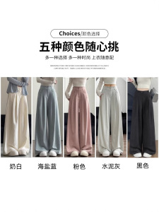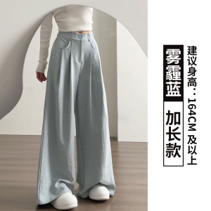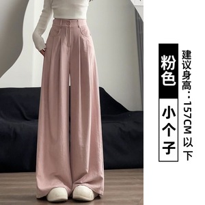 女性用白スーツワイドレッグパンツ夏薄手2025新作ハイウエストドレープ小柄ストレートパンツレイジーマウンテンパンツ