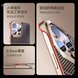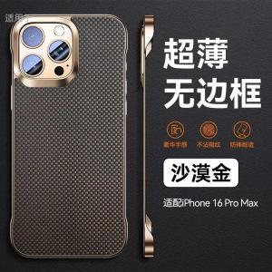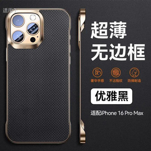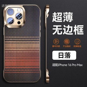Apple 16promax 携帯電話ケースに適した超薄型ケブラー柄フレームレス iPhone16 落下防止保護カバーハード