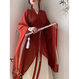 【绫罗】红色套装外衣+里衣+腰封+腰绳+发带