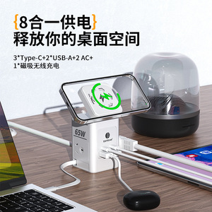 デスクトップ電源タップ 65W 窒化ガリウム急速充電、急速充電ケーブル付き、多機能デスクトップテーブル、多機能電源タップ