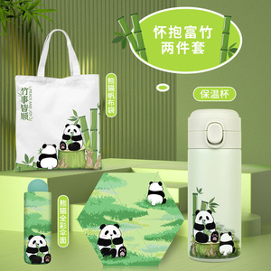 魔法瓶カップ + ネックプロテクター + パンダ傘 + キャンバスバッグ