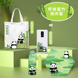 竹カップ + モバイルバッテリー + パンダ傘 + キャンバスバッグ