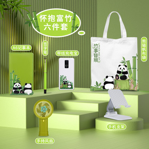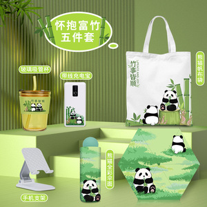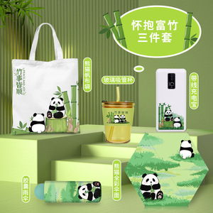 竹カップ + モバイルバッテリー + スタンド + パンダ傘 + キャンバスバッグ