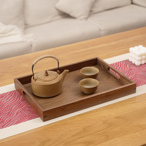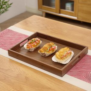 ブラックウォールナットトレイライト高級ハイエンドコーヒートレイ長方形木製ティーカップトレイ無垢材ケーキスナックトレイ