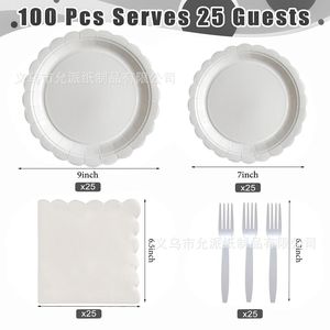 ホワイトレースパーティー食器使い捨て紙コップ紙皿ペーパータオル用品セット誕生日無地装飾カトラリー