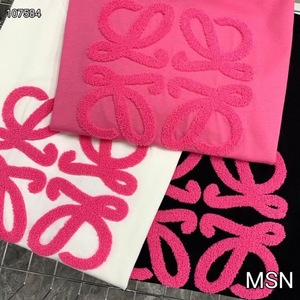 25 春夏新作レディースタオル刺繍文字刺繍柄 Tシャツ黒白ピンク工場直販