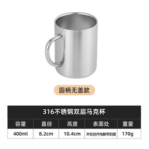 316 カスタマイズされたステンレス鋼のコーヒーカップ、二重層マグ、火傷防止ティーカップ、蓋付き幼稚園用ウォーターカップ、学生用カップ