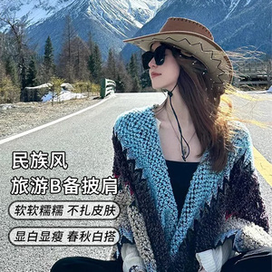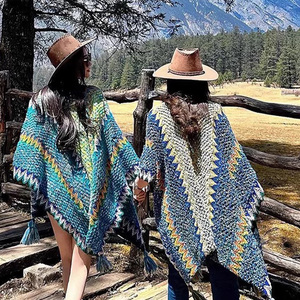 新しい雲南チベット旅行エスニックスタイルニット暖かい多用途スリットショールマント装飾付き