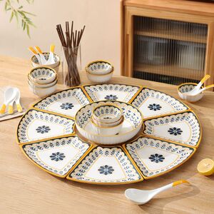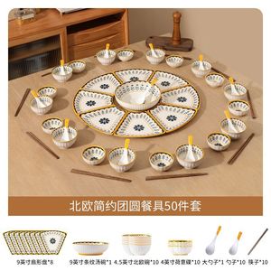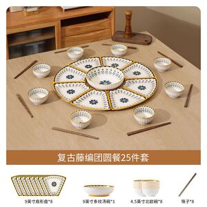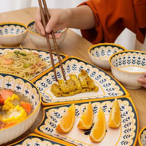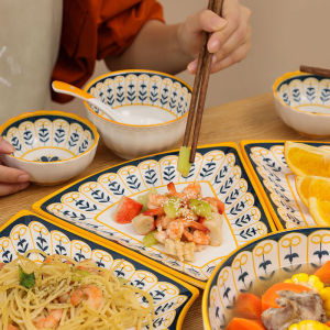 下絵色和風大皿食器組み合わせ陶器皿スープボウル家庭用大晦日ディナープレート新年食器セット