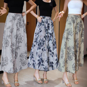 レトロな絞り染めプリントアイスシルクキュロット、スリム、ハイウエスト、伸縮性、大きいサイズ、ワイドレッグ、夏用薄手カジュアルパンツ