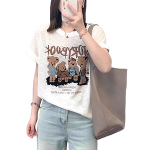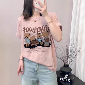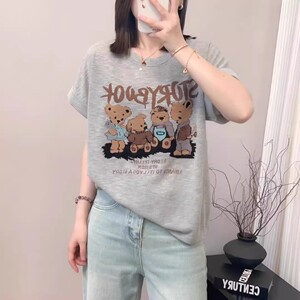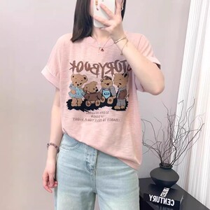 大きいサイズ Tシャツ漫画クマ薄い半袖 2025 夏のファッションファット MM スリムルーズ韓国スタイルカジュアルトップ