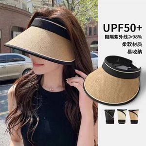 夏用の女性用麦わら空のつばの日よけ帽子、大きなつば、紫外線防止、サイクリングフェイスカバー、折りたたみ式日よけ帽子、UV日焼け止め帽子