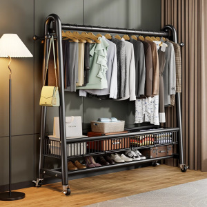 モバイルコートラック、汚れた衣類バスケット、洋服ラック、寝室の床置き家庭用衣類収納ラック、垂直ラック