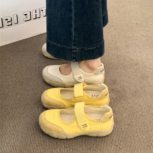 フレンチメリージェーン婦人靴2025新作夏ベルクロスカート付き厚底美しく疲れにくい小さな靴