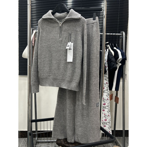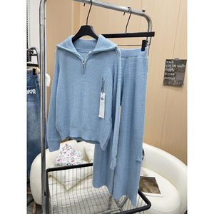 aloビバリーヒルズ リラックスオールドマネースタイル Vネックトップスとパンツ 気質ファッションスーツ 万能ニットパンツ ワッフル