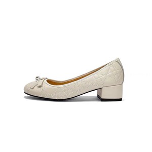 フランスの美しいスモールヒールシューズ、ミディアムヒール、ラウンドトゥ、リボン、女性用の明るい色の靴、疲れない足、ソフトソールハイヒール、2025