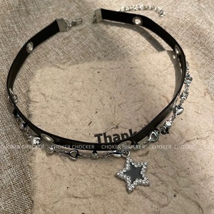ブラックダイヤモンド五芒星タッセルネックレスレディースチョーカー甘くてクールなホットガールニッチデザイントレンディでクールな鎖骨チェーンアクセサリー