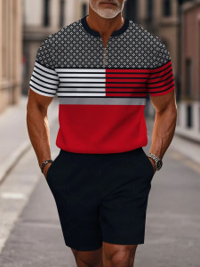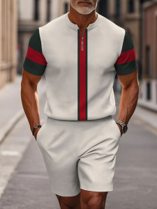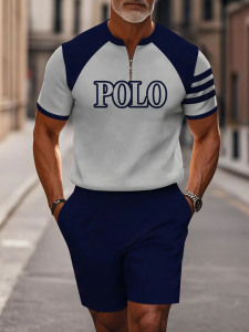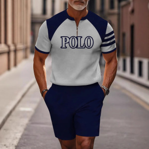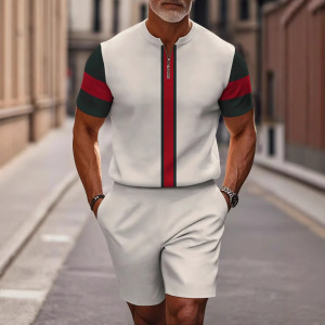 2025 ヨーロッパとアメリカのクロスボーダー独立したステーション新しいメンズカジュアルスポーツハーフジップ半袖ショーツスーツファッション紳士服