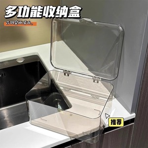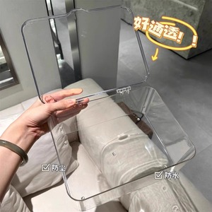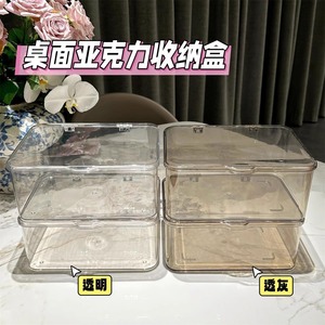 フリップトップデスクトップ収納ボックス透明アクリル防塵整理ボックス寝室寮オフィス収納バスケット蓋付き