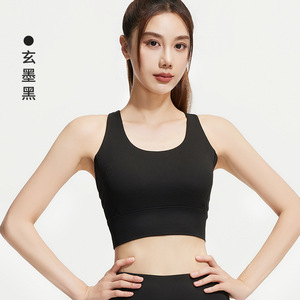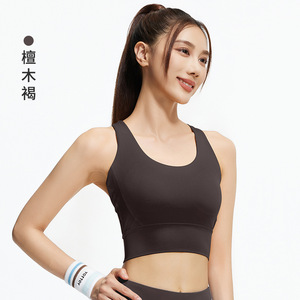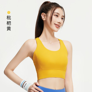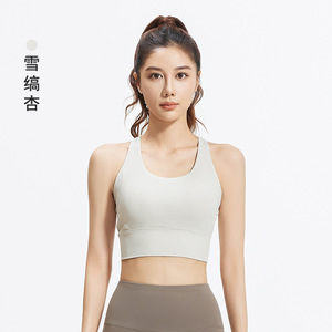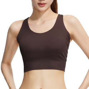 イゼル固定胸パッド高強度耐衝撃ヨガバックストライプバッククロススパゲッティストラップスポーツブラ女性用