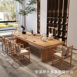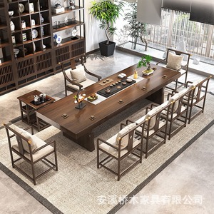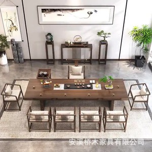 新しい中国風の無垢材のティーテーブルオフィスホテルの受付禅大型ボードティーテーブルホームリビングルームティーテーブルと椅子の組み合わせ