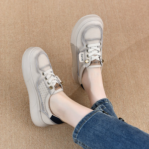 2025 新しい女性の人気のレトロなカラーブロックフラットヒールソフトレザーソフトソールファッションワンステップカジュアルシューズ 6605