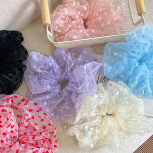 韓系のふわふわしたカラーの愛の点の網の紗の大腸の髪の輪の怠惰な風の団子の髪の毛の縄の頭は女性の新型を飾ります。