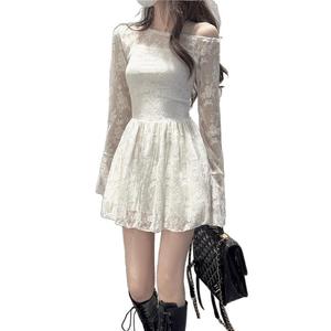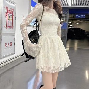 韓国ミルクアプリコットウエストAラインスカート女性初秋の新しいスタイル優しいスタイルホットガールレース長袖ドレス