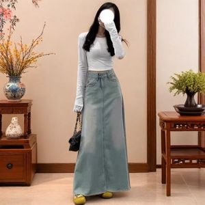 百搭水洗大摆牛仔半身裙2025夏季新款高腰毛边韩系显瘦A字长裙女