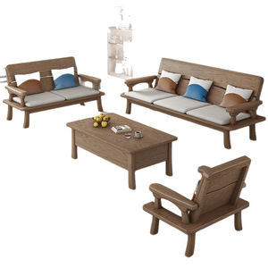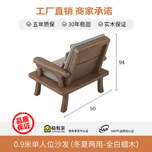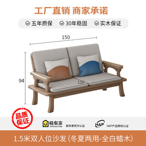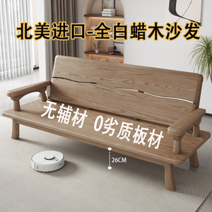 北欧純無垢材アッシュウッドソファリビングルーム新中国風ログ冬夏兼用3人掛けソファ新家具