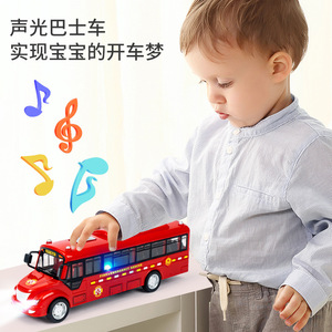 儿童双惯性滑行玩具车声光公交车公共客车校园巴士车模型地摊